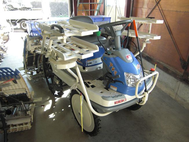 イセキ乗用田植機 4条・パワステ・HST前後進無段変速・オートアクセル・ロータリ植付・セル始動・Zターン・バックリフト・アゼギワクラッチ・オートマーカ・風車マーカ・施肥機・37株疎植対応・枕地ならしロータ付