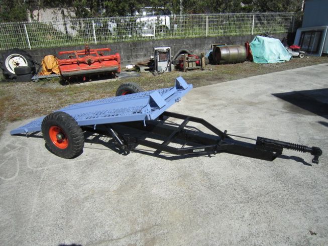 中川車輌シーソータイプトレーラー、最大1,200K積載、荷台幅110cm、荷台長さ228cm、タイヤサイズ、6.00-9 6プライ、ショック油圧及びブレーキ良好。