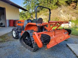 クボタKL25パワクロです!足回り動輪・転輪・遊輪ガタ点検&グリスアップ!不良ヶ所ベアリング&オイルシール交換!クローラー張り調整!自動水平,オート深耕,逆転PTO,倍速ターン,バックアップ,旋回アップなどなどフル装備です!前タイヤ新品!クローラーも摩耗少なく,大きな亀裂なく,程度良好です!各部整備済みで調子抜群!耕運爪9分残です。アワメーター721hです!