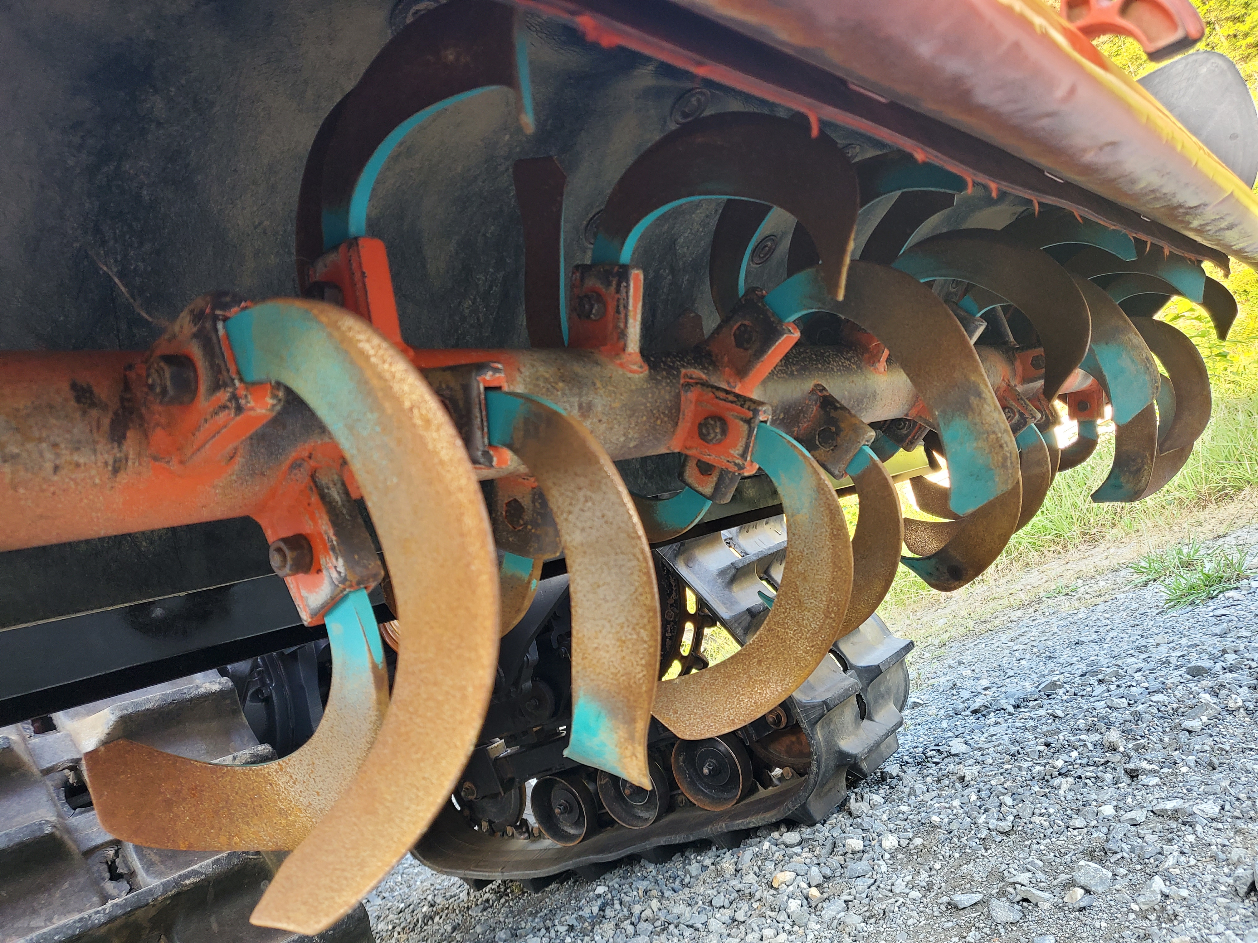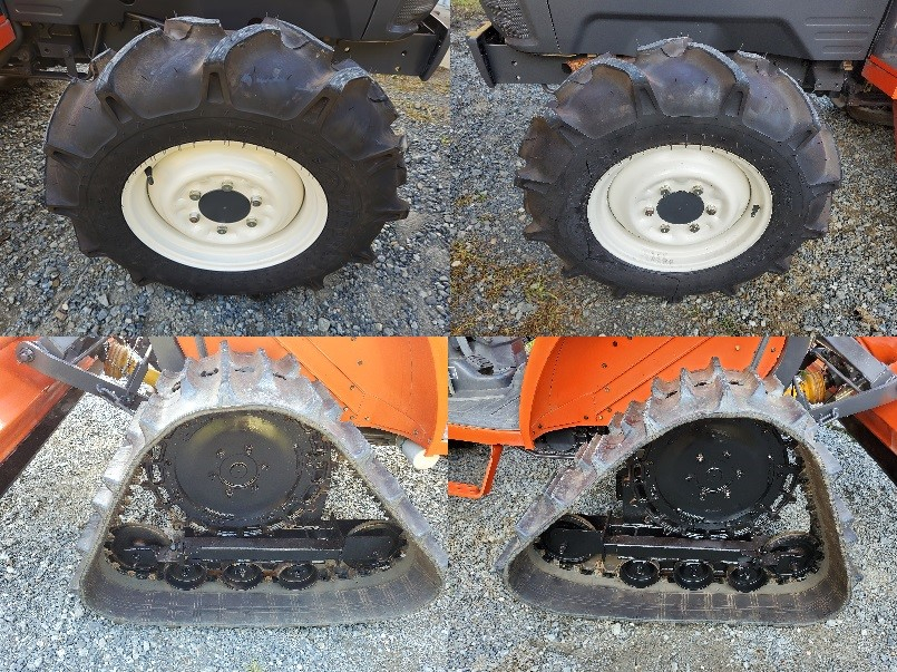 後輪足回り動輪・転輪・遊輪ガタ点検&グリスアップ 左右遊輪ベアリング&オイルシール交換 クローラー張り調整 右後輪車軸オイルシール交換 前タイヤ交換 左右フロントサイドレンズ交換 右テールレンズ交換 ポンパレバー交換 ブレーキ&クラッチペダルゴムカバー交換 エンジンオイル交換 エンジンオイルエレメント交換 フロント車軸オイル点検 油圧ミッションオイル点検 冷却水点検 ロータリーチェーンケースオイル交換 ロータリーセンターデフオイル交換 エアクリーナー清掃 燃料フィルター清掃 各部センサー調整 ブレーキ調整 耕運爪増し締め 各部グリスアップ 各部動作点検・調整 他