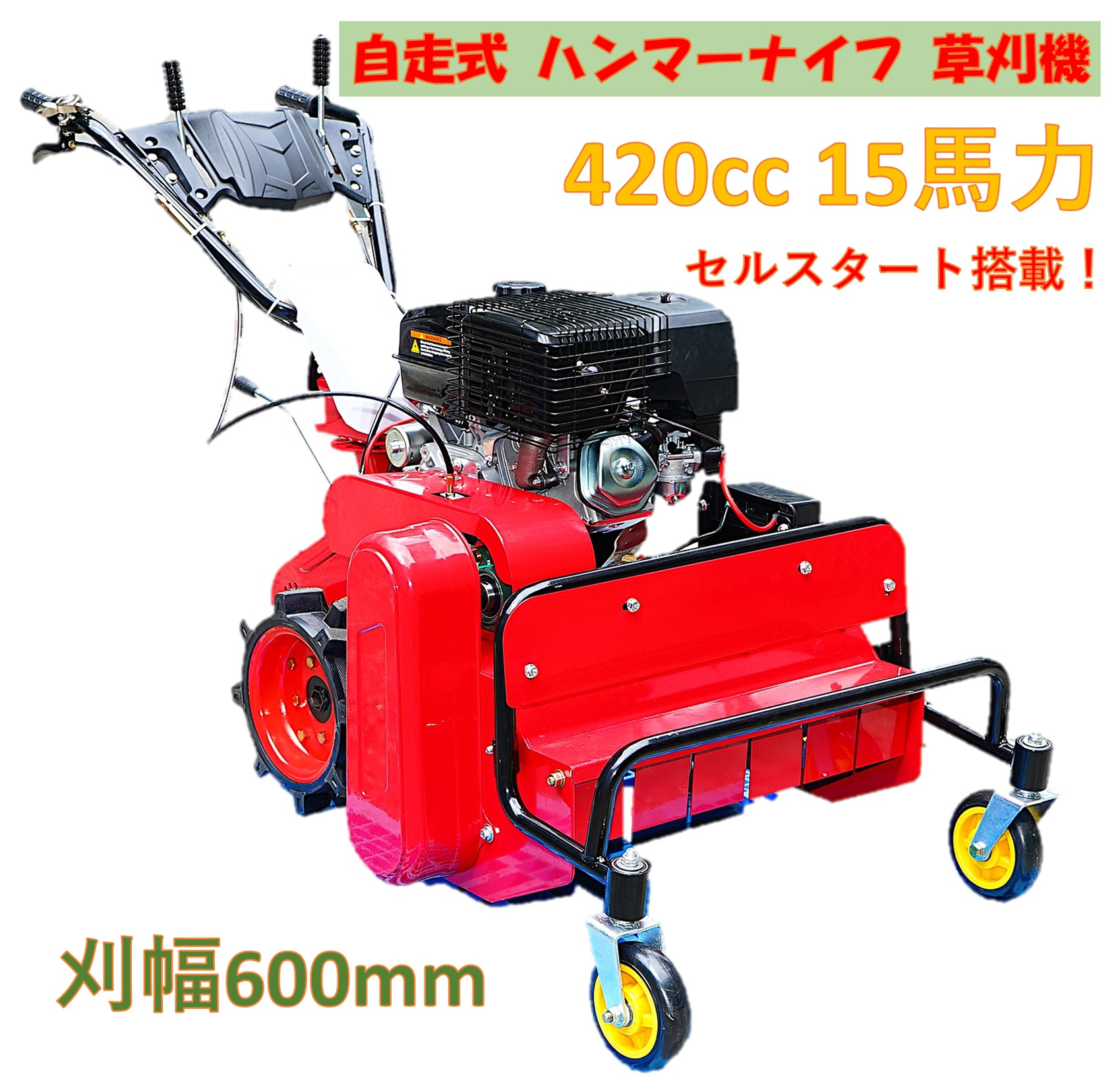 NEW 草刈機 グラスアース GE-SCJ60K 自走式 ハンマーナイフ 草刈機!ハイパワー 420cc 15馬力 刈幅60cmタイプ セルスタート付!田畑の除草に使いやすい!