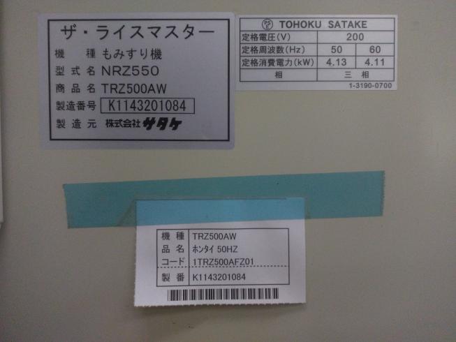 NEW 籾摺機 サタケ TRZ500AW 新潟●〇
