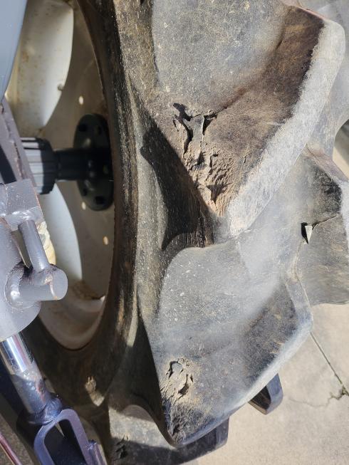 ※右タイヤ内側にラグ欠けが複数見られますが,使用に支障ありません。(写真参照)